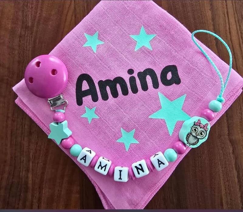 | Nuggikette Holz mit Namen und Silikonanhänger | CHF 24.50 |